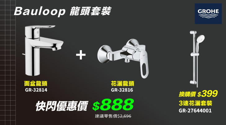 德國 GROHE Bauedge 龍頭花灑套裝 1套3件 送毛巾圈/毛巾通/廁紙架